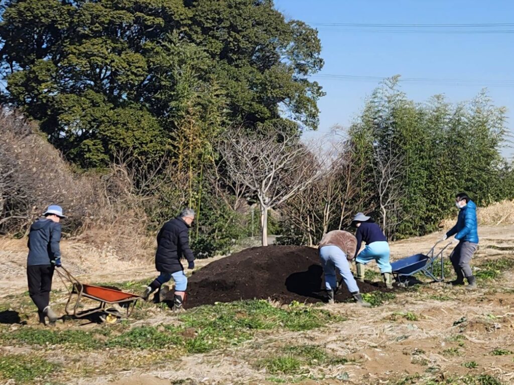 土の学校 土づくり 土の学校 2026.01.25 土の学校のプログラムで、たい肥をまきました。山積みになっているたい肥を各区画へ一輪車で運びます。 柏たなか農園ではできるだけ化学肥料を減らそうと取り組んでいて、その分たくさんのたい肥を畑に入れていきます。 寒い日でしたが、終わるころにはみなさん汗だくでした(笑) この後、2月にはトラクターで全面的に耕し、3月からの新シーズンに備えます。 2026年度の土の学校新規会員も募集しています。興味のある方はぜひ説明会にご参照ください。