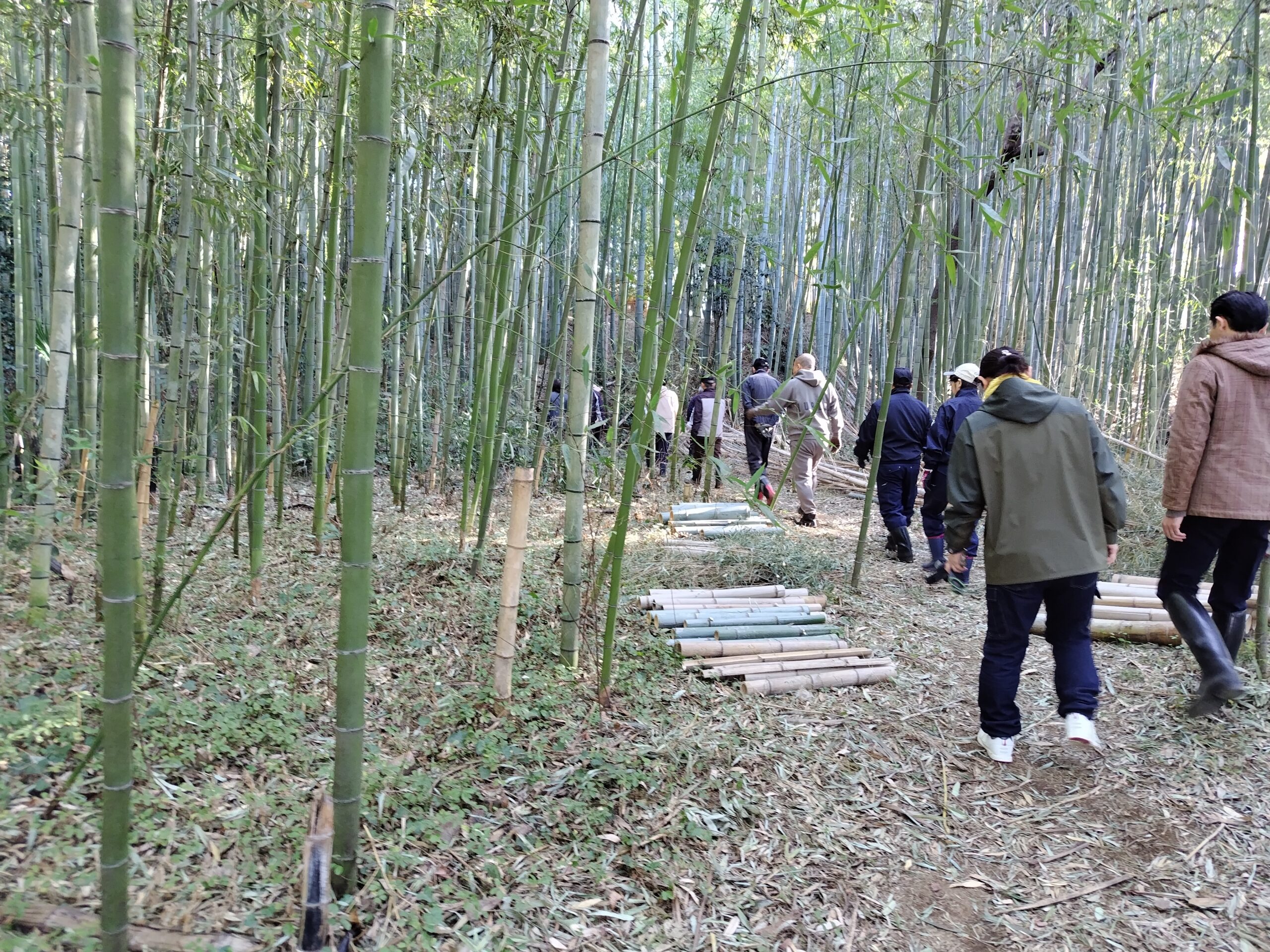 竹林で竹を切り、炭焼きに適する形に整えていきます。