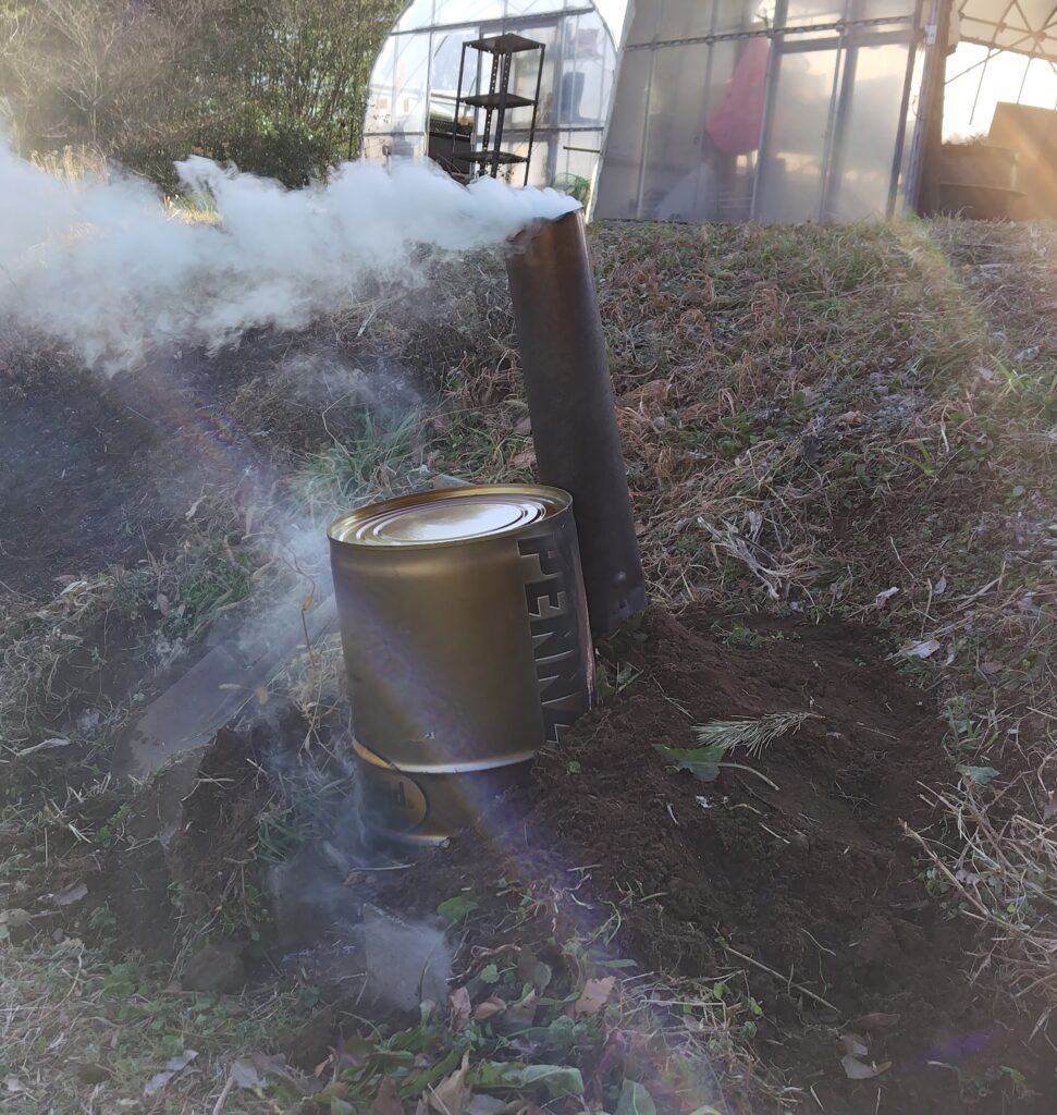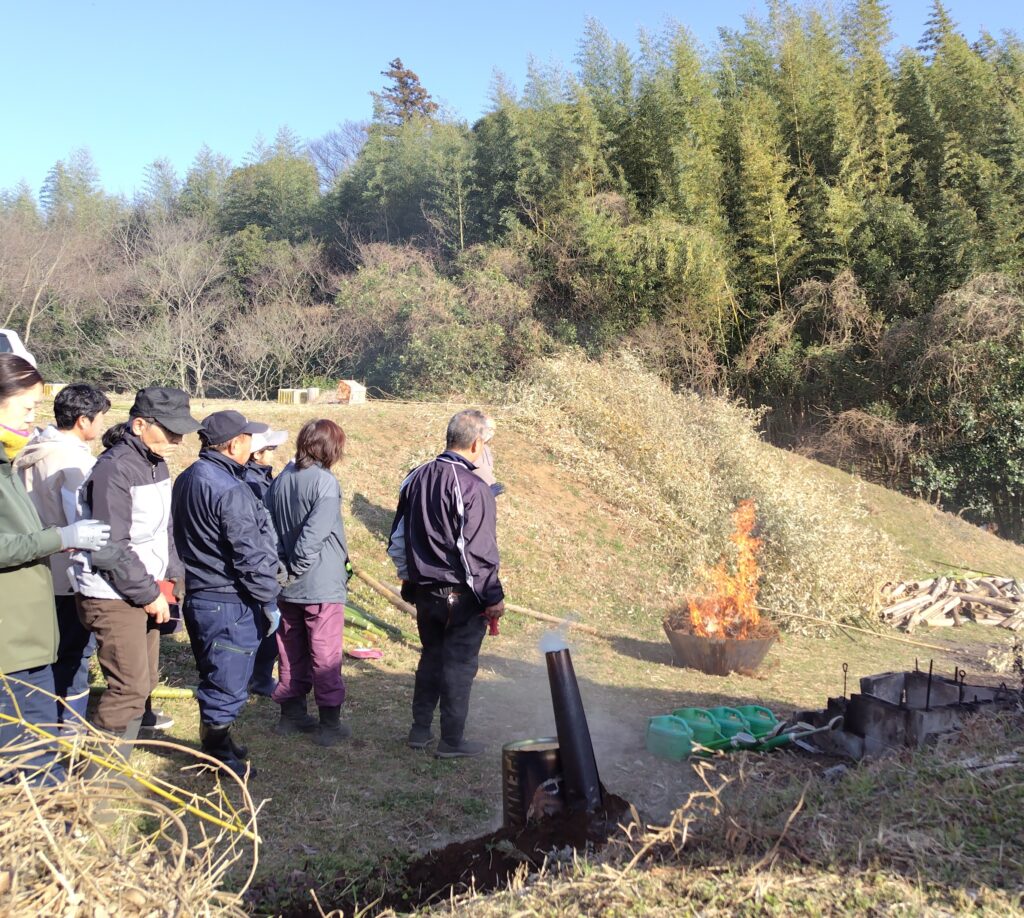 風が無く穏やかな日だったので開放型の炭焼きも行えました。
